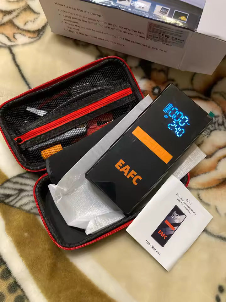 - Urządzenie 4 w 1 - starter, kompresor, powerbank, latarka
